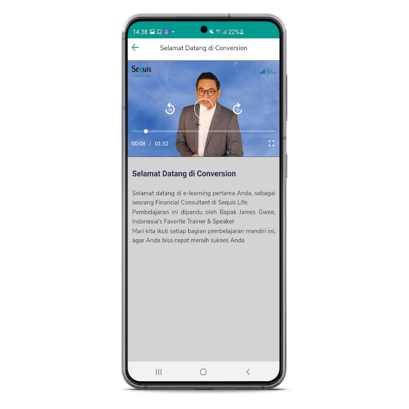 Aplikasi pembelajaran online untuk agensi Sequis Life