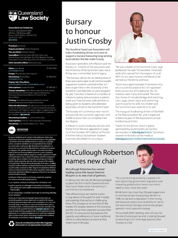 Proctor is the magazine of the Queensland legal profession.