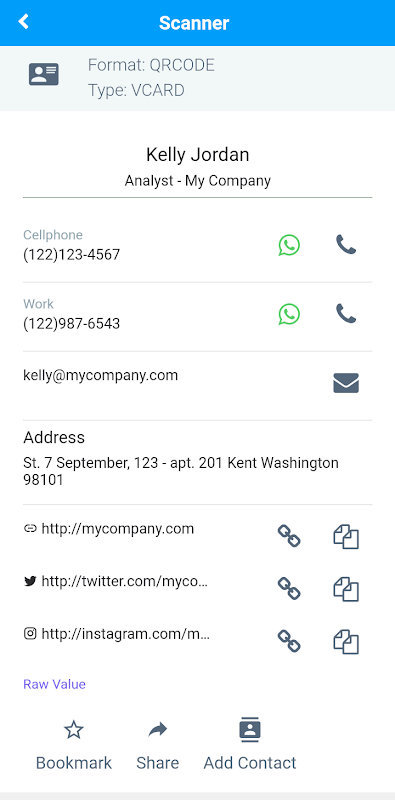 Reading multiple codes at the same time, image scanning, and specific functions for each type of QR Code (web search, connecting to Wi-Fi, adding contacts, events...).