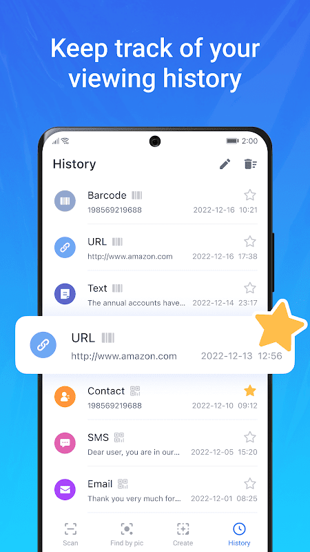 All your scanned results will be included in the scan history, and you also can share the scanned results with friends or add them to your favorites.