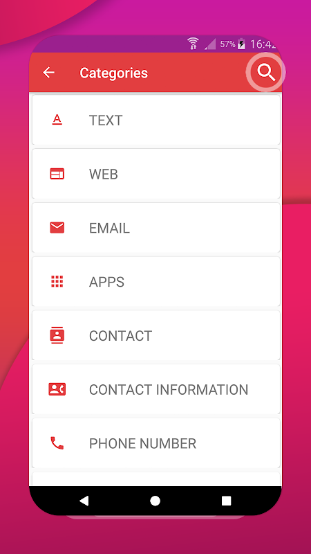- create qr code from : Phone number, website , Email Address, Geo Location, Texts, Calendar Event and Contact information like Vcard, mecard and bizcard