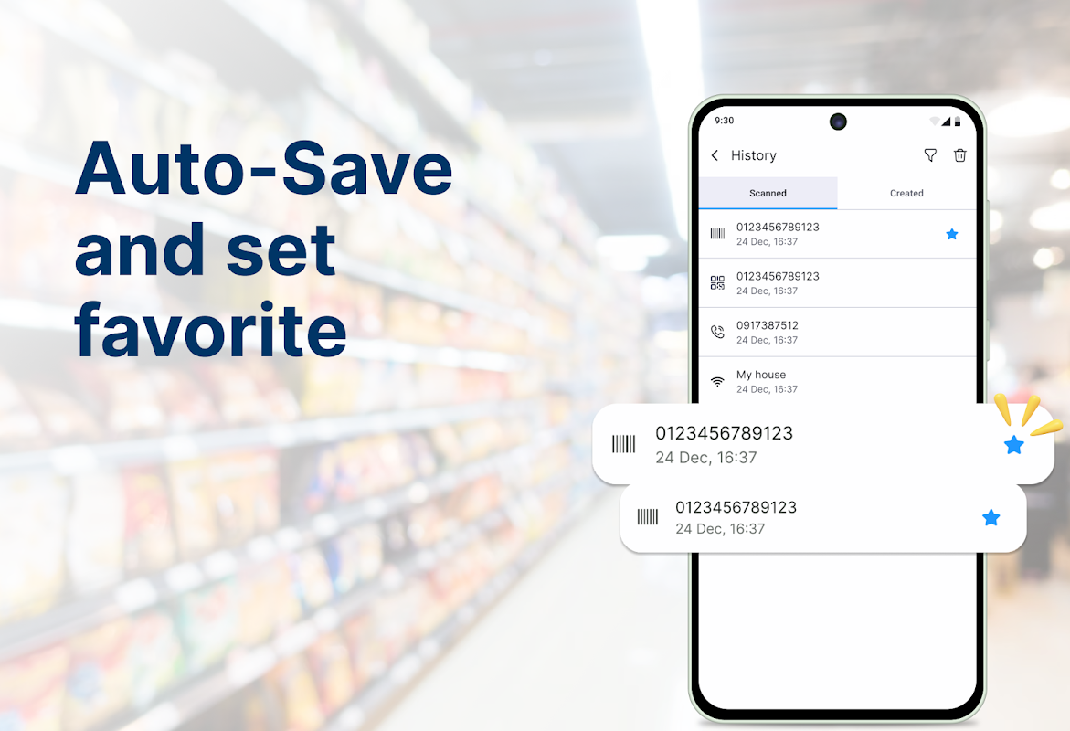 Scan and create QR codes/barcodes, connect Wi-Fi, open links, and more.
