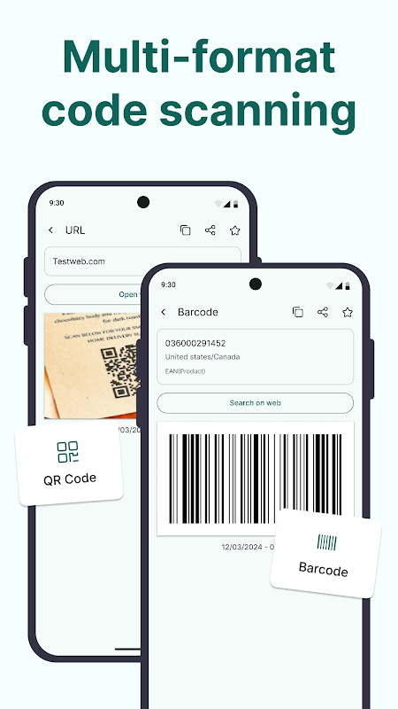Scan & create QR/barcodes. Join Wi‑Fi via QR and open web results for details.