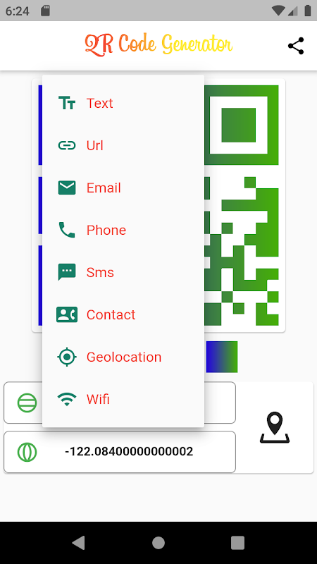 Various content types are supported, include Text, Url, email, phone number, Contact, Location and SMS.