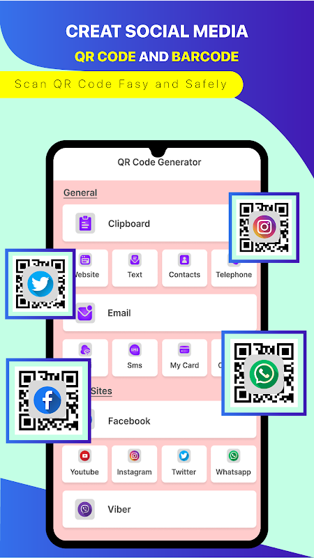 QR code generator and scanner allow users to freely create QR codes or barcodes. The option to generate QR codes or barcodes serves a variety of purposes, such as generating codes for your own social accounts, contact information, or business products. You can generate a QR code and allow you to save, share the code you just created.