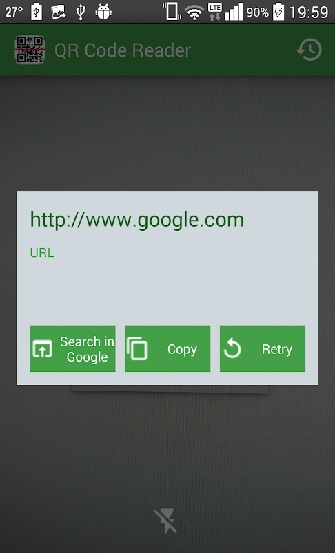 When scanning the QR code and Barcode, if the code contains a URL, you can open browser to the site by pressing the "Search in google" button.