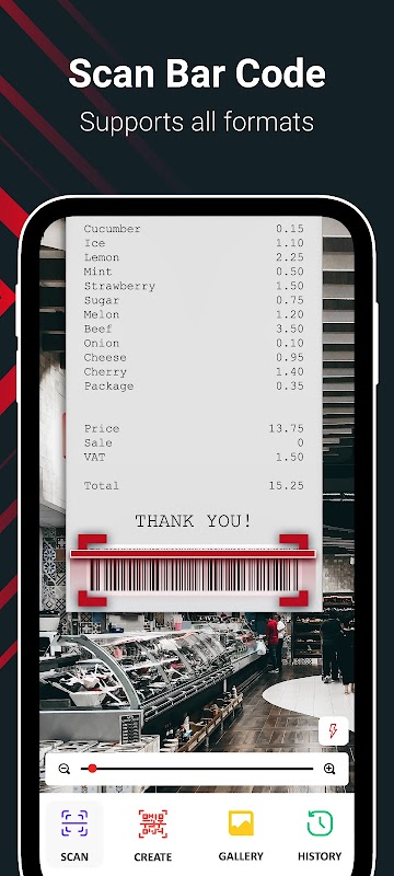 - Instantly scan QR code from pictures or scan directly using camera with QR scanner