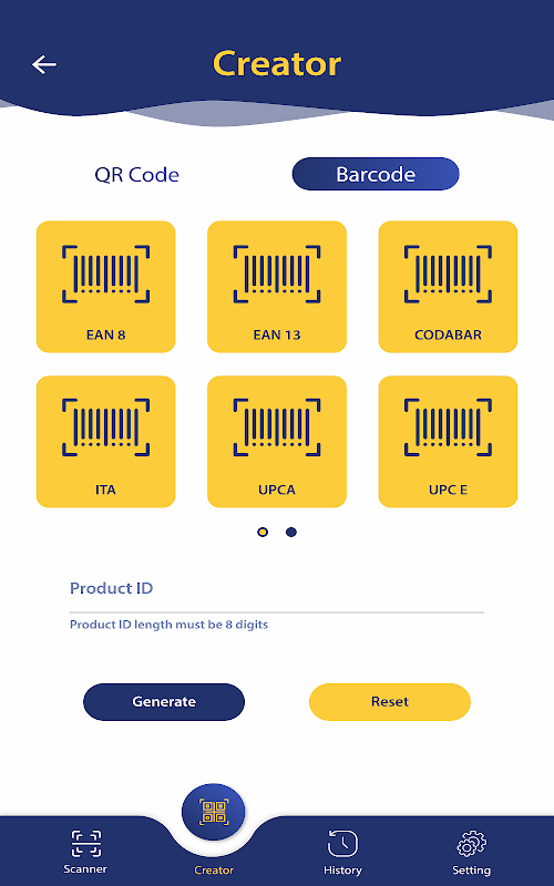 1. Open the Generator tab to find the all the formats. Click on format you want to generate enter the details and generate qr or barcode.