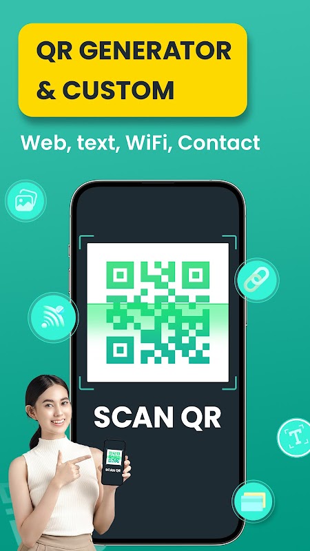 "Quickly scan and retrieve information in convenient QR code scanner- barcode reader app! With this app, you can instantly scan QR code and scan barcode to access detailed information on products, services, or locations; compare product info and price. Besides, you can use QR code generator feature for a variety of uses: websites, WiFi, contacts, messages, text, events, location and more . Enjoy maximum convenience & be a smart consumer by using QR code reader & barcode scanner app!