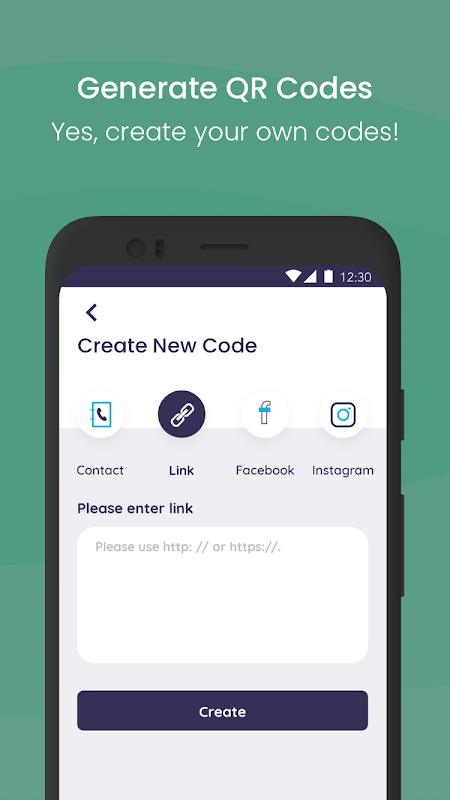 You can create QR codes for multiple social media profiles like Facebook, Instagram, Twitter, YouTube, Playstore apps, WhatsApp and many more using the QR code scanner and Barcode Scan app.