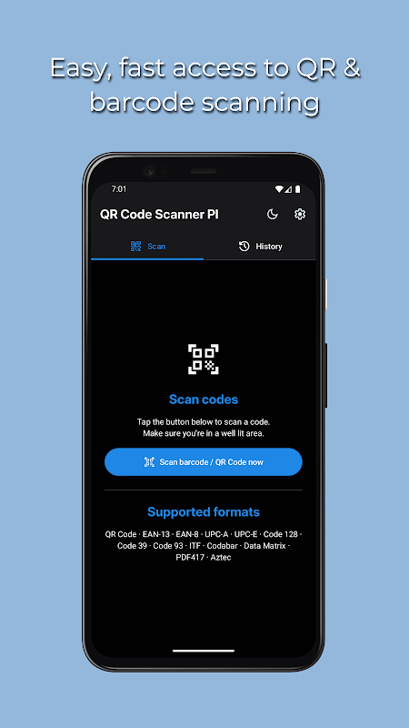 Download QR Code Scanner PI today and scan QR codes and barcodes safely and instantly.