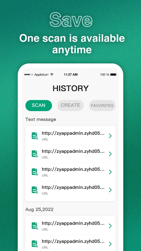 History: All created and read codes are secured in the history