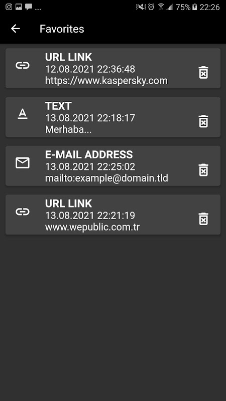✔ Add QR scan results to favorites,