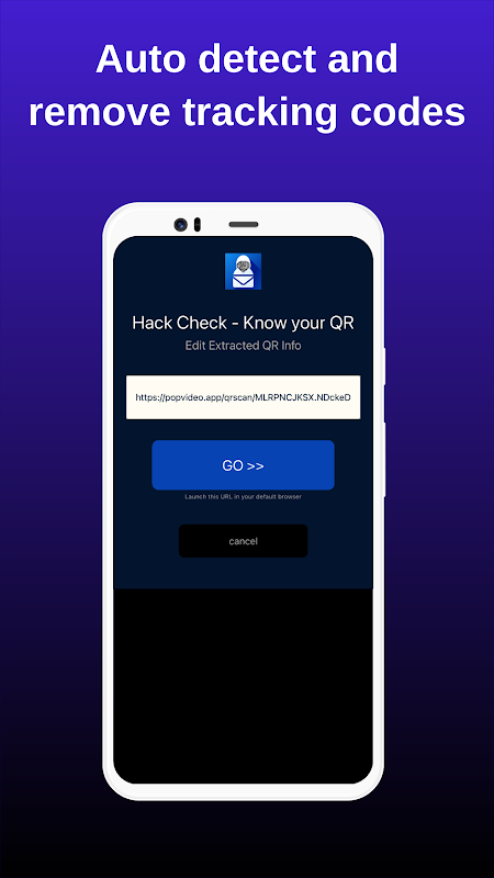 "The ""Hack Check"" app is designed to enhance your QR code scanning experience by providing a layer of security and control that most standard QR readers lack. When you scan a QR code, instead of being automatically directed to the embedded website, Hack Check presents you with the URL first. This allows you to review and understand where the QR code is taking you before you visit the site, offering a crucial security check to prevent phishing and malicious attacks.