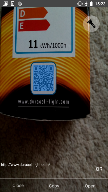 If the scanned QR code is a web address it will be opened in browser directly - if not or it is other barcode type it will be opened in search.