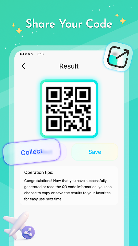 QR codes you create can be shared directly with others.