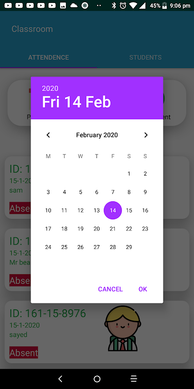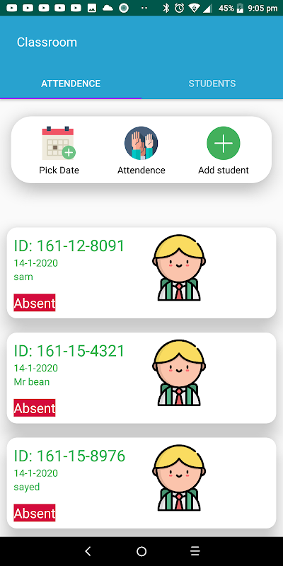 The app is designed for teachers. teacher can register, create classroom, register students, take attendance of student using Qr code. it makes attendance system easy and faster. after creating class teacher can create Qr code for the class and student can scan the Qr code in their respective app, teacher will receive request and register the student into the class. when the teacher registers the student all the information of the student is fetched directly from the students database, no need of manual entry, just simple one click to complete the process. the teacher can create Qr code every date, when the student scans the Qr code their attendance are saved in the database. the app uses firebase real time database as backend for the app. firebase google auth for registration process. students app has been developed separately. you can download the app from this link : https://play.google.com/store/apps/details?id=com.sayed.smartattendencestudentapp