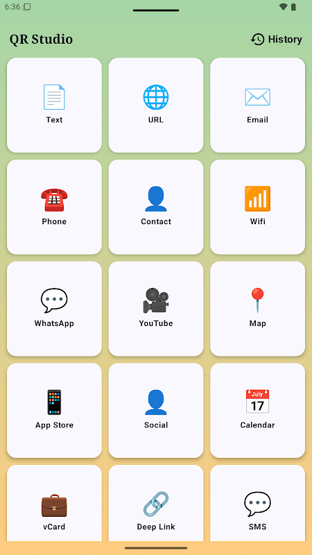 Create QR codes for text, URL, email, phone, WiFi, location, contact, calendar, and more.