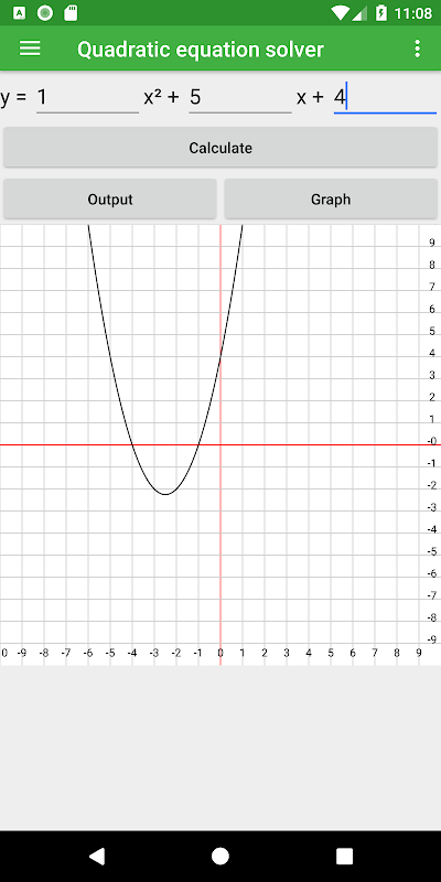 You can use this app the calculate the roots (y = 0) and vertex (top) of any quadratic equation. The app has a very user-friendly interface that allows you to enter your quadratic equation. The app shows all formulas used to calculate the coordinates of the roots and the vertex. You can also graph the equation.
