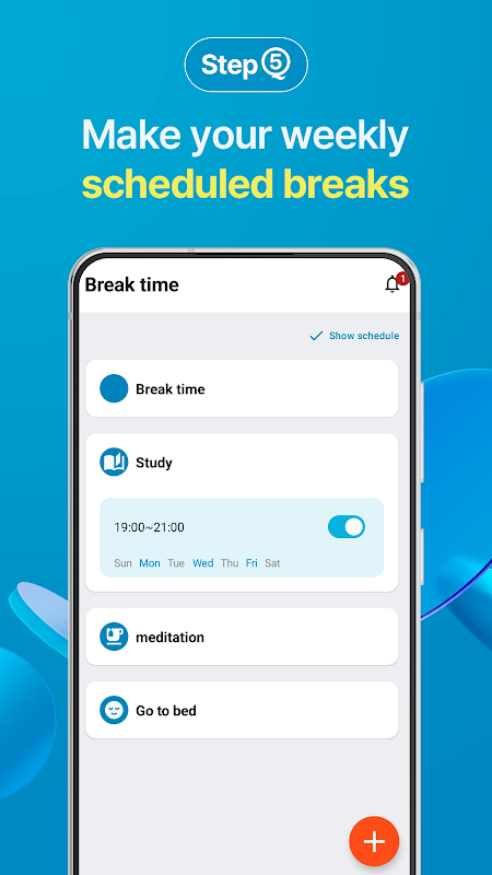 - “Scheduled Break” : Make a routine by setting “Take a Break” with repeating schedules.