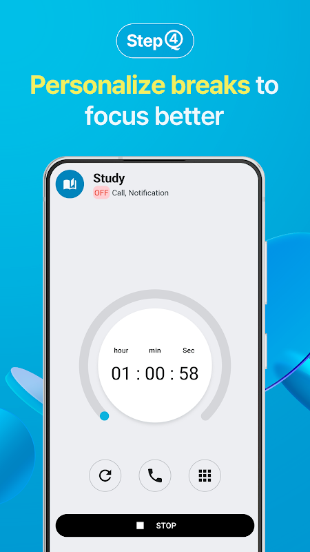 - Manage your break time conveniently by setting profiles for study time, meditation, etc.