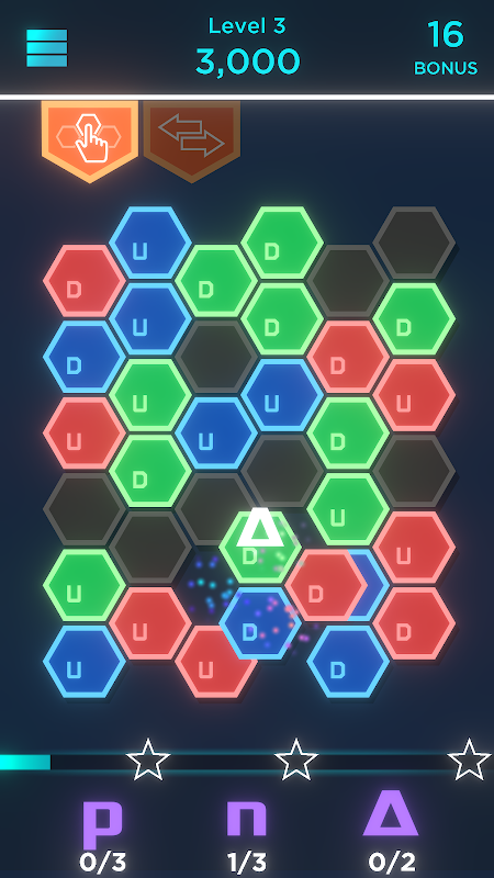 Quantum 3 is an educational match-3 game for all ages where fun meets quantum physics! Build subatomic particles, learn about the mysteries of fundamental physics and deploy antimatter to clear the way! You'll match and swap quarks to make (and learn about) the baryons you need for each objective. Puzzle out the quantum properties of color, flavor and spin. So get in there and start your quantum-venture! Quantum 3 is puzzle-matching at its finest and a great intro to the world of particle physics!