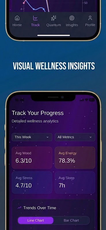 Track daily mood energy and explore Quantum audio for mindful balance.