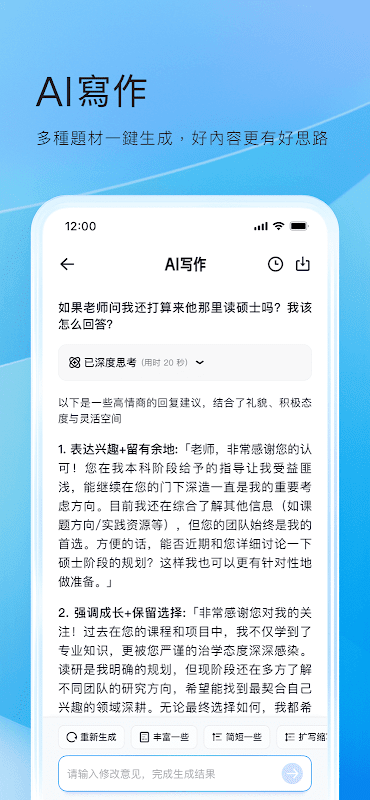 1. AI search: fully activate "deep thinking" to easily solve complex problems! Ask a question at any time, not only will you get a good answer, but also a good solution.