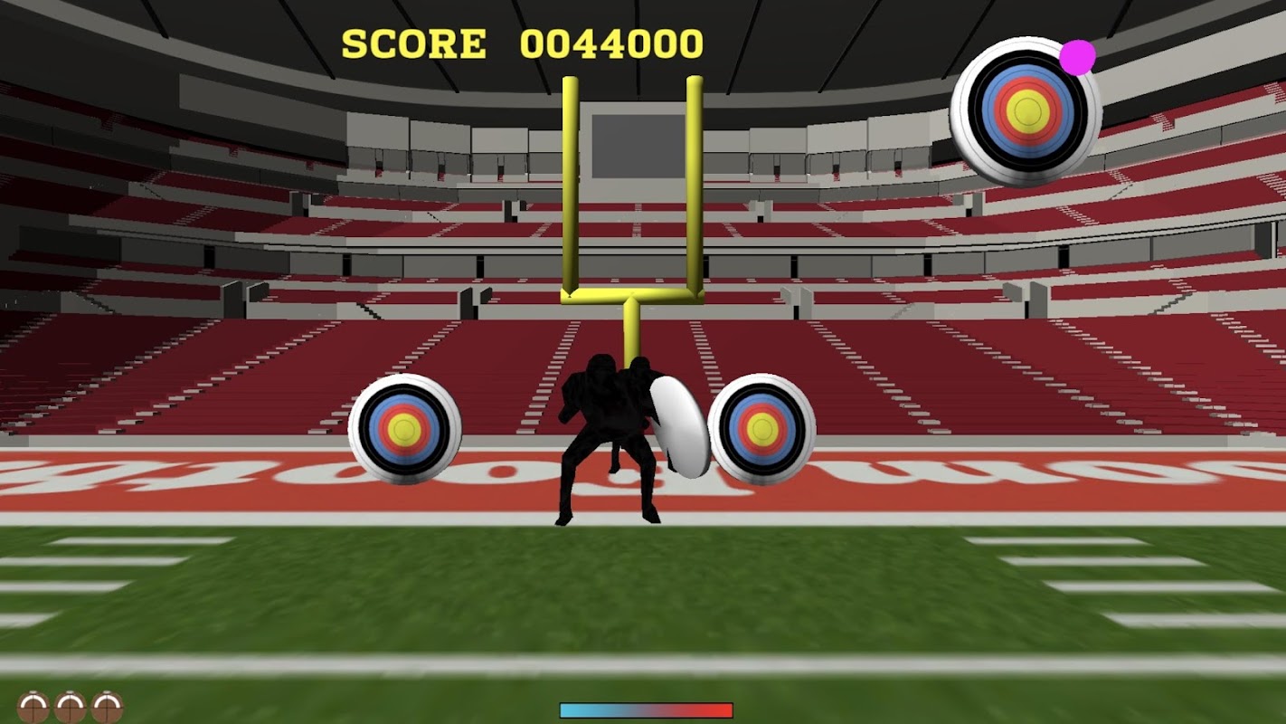 Progressive difficulty will ensure the challenge of getting the high scores will keep you coming back for more. With every touchdown you score you will be challenged with increasing numbers of defenders and the targets will speed up. Adjust your throws to ensure the ball is not swatted away!