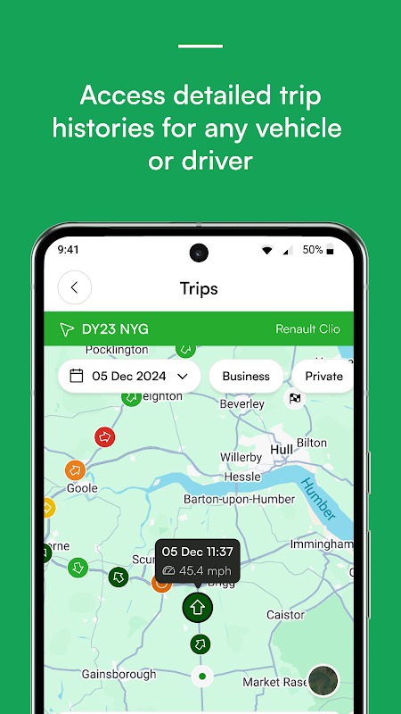 - Track your fleet showing the latest vehicle or driver location on the map or as a list.