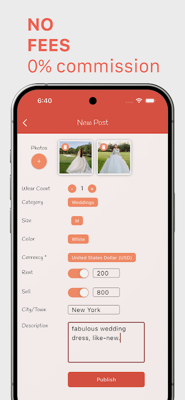 Queen & Queens gives you the power to sell or rent out your dresses instead of watching the dust on them for years! Contact is direct between you and others. No commission for us. Pick the photos and post them easily.