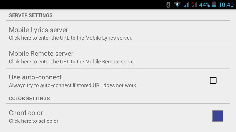 · A customized version of the Mobile Lyrics view where you can change the color of the chords, the background and the lyrics