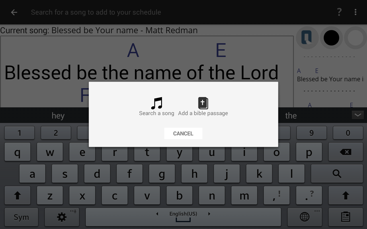 · Add a bible passage or a song to the schedule
