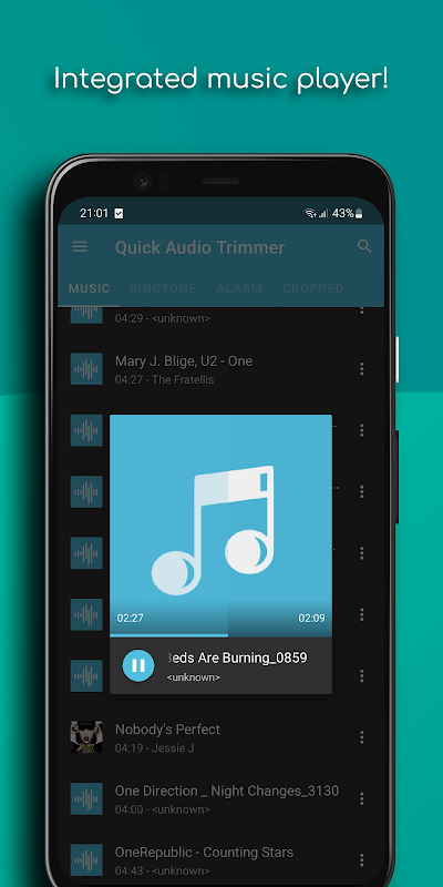 🎧 Quick Audio Trimmer boasts a sleek yet user-friendly design. Our music editor makes it simple to create ringtones, alarms, or notification sounds by editing your favorite tracks.