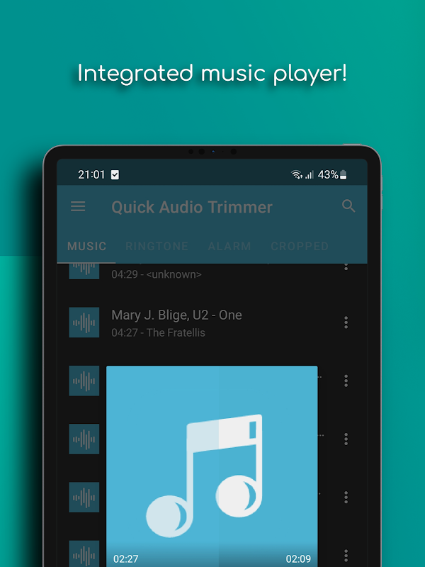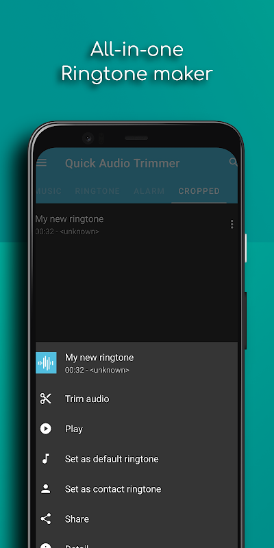 Quick Audio Trimmer allows you to cut music and extract parts of your favorite songs. Discover the extensive functionalities this ringtone maker offers!
