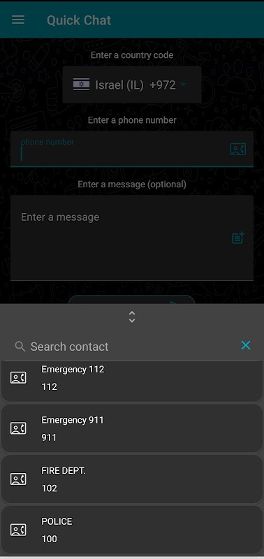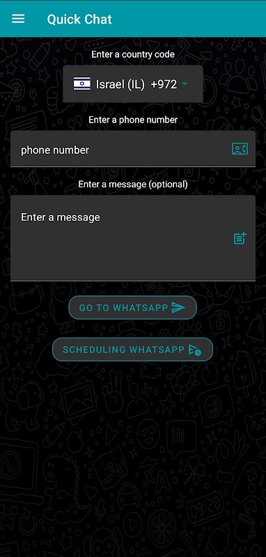 "Quick Chat" is the simple and fast way to start a conversation with any number, without saving it to your phone.