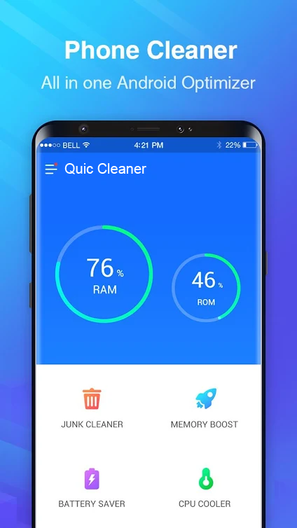 Quick Cleaner is a FREE phone cleaner & speed booster with Junk Cleaner, App Management, Speed Booster, CPU Cooler and Battery Saver, which make phone faster and restore memory space.