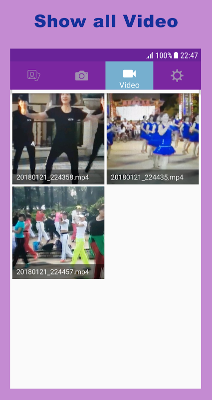 Your phone has a lot of photo and video in gallery, you difficult to see all of them. So we create this application for easy manage all your photo and video on one screen. It's really simple and helpful for you.