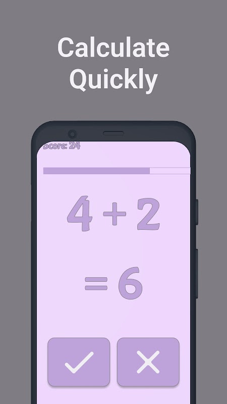 Quick Math will help you improve your math skills and speed. Random questions will present to you for you to evaluate as true or false. For you or or children Quick Math can improve mental calculation capacity with fun. If you ready to become a math genius download now!