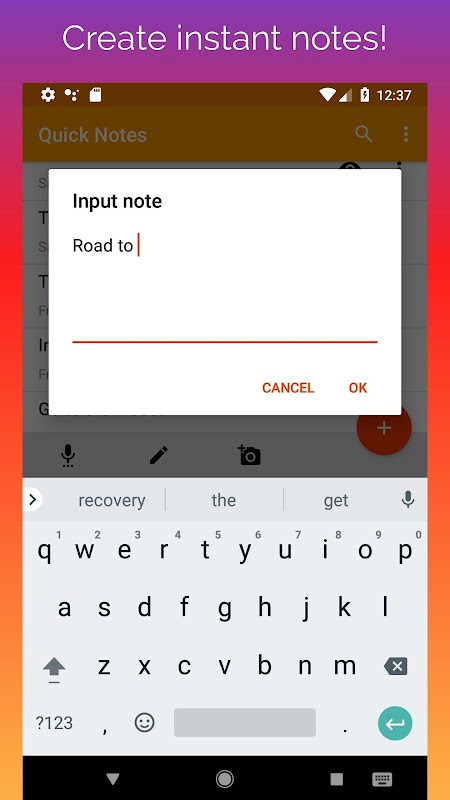 Easy application for creating quick notes. Just one click and you're already entering text, recording a sound, taking a picture or drawing! No procrastination!