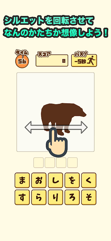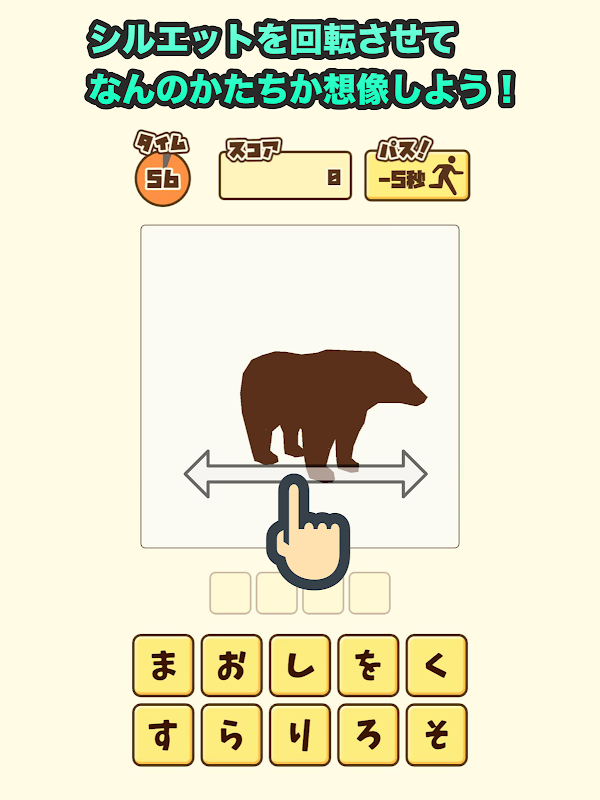 Quick Press! Use your knowledge and imagination in Silhouette Quiz 3D! Over 150 quizzes await you in this addictive free game where you swipe and rotate silhouettes to guess the animals, vehicles, furniture, buildings, food, tools, and plants. Enter your answers quickly to get a high score, and compete with friends and family using the ranking function!