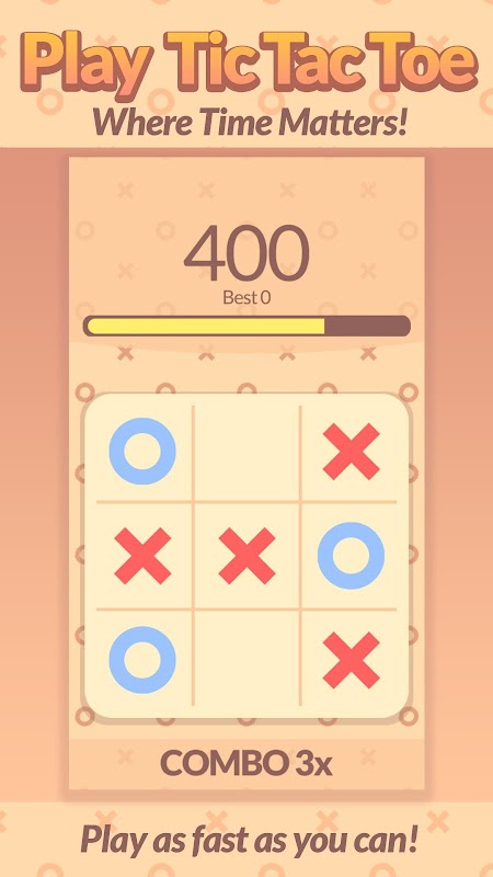 Quick and playing fast in this game, and you will be guaranteed to get lot of FUN and BEST EXPERIENCE! It's casual game but addictively fun when you have idle time like waiting in the lines. You can compete with your friends too, to prove who is the best Quick Tac Toe player!