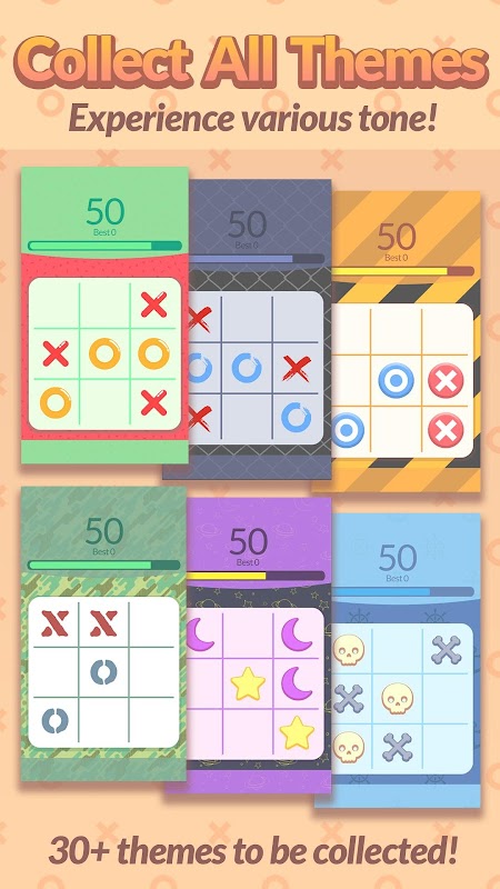 Keep playing and gather diamonds to UNLOCK 30+ collectable themes, for various experience in playing Quick Tac Toe!