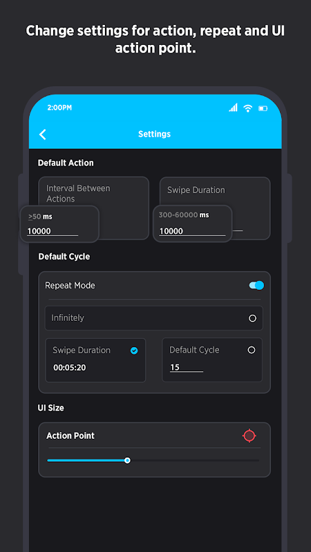 - Set total swipe duration, set number of the cycle in setting panel. You can set an infinite repeat mode as well.