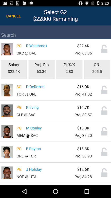 You’ll start with our algorithm-projected lineup. Then, with the tap of a finger, you can remove players you hate or lock players you love for that night’s games. We’ll instantly re-optimize your roster based off your selections, giving you a viable lineup you can enter in contests right away!