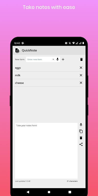 Take control of your notes and lists today with QuickNote - the smarter way to stay organized.