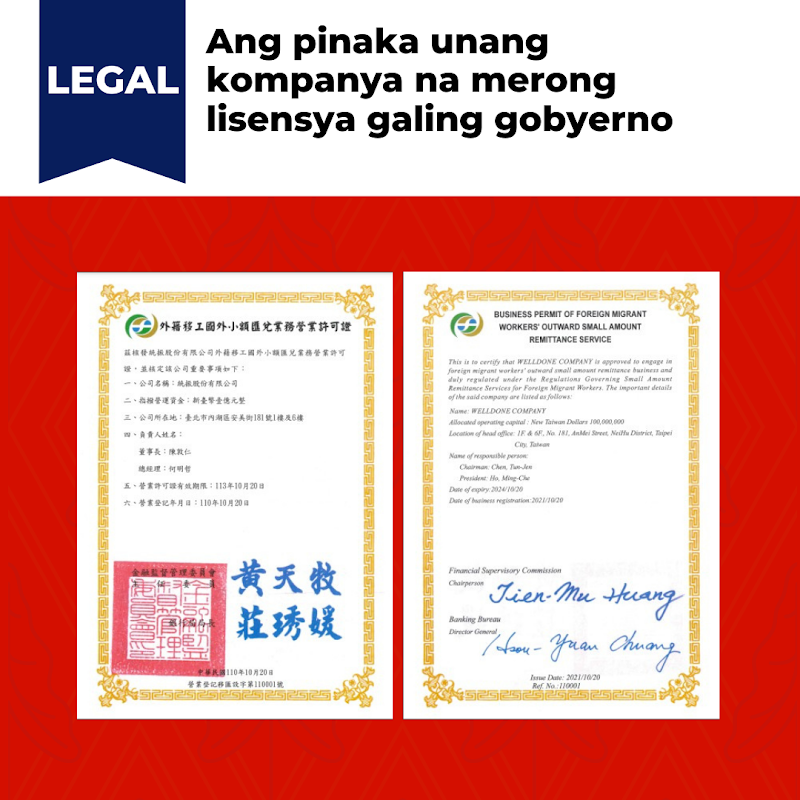 Easy payment by using Pin Code to all Taiwan mini markets such as Seven Eleven (7-11), FamilyMart, OK Mart and Hi-Life. Within one day your money has been sent, of course with a high exchange rate and all transactions send money neatly recorded in the application.