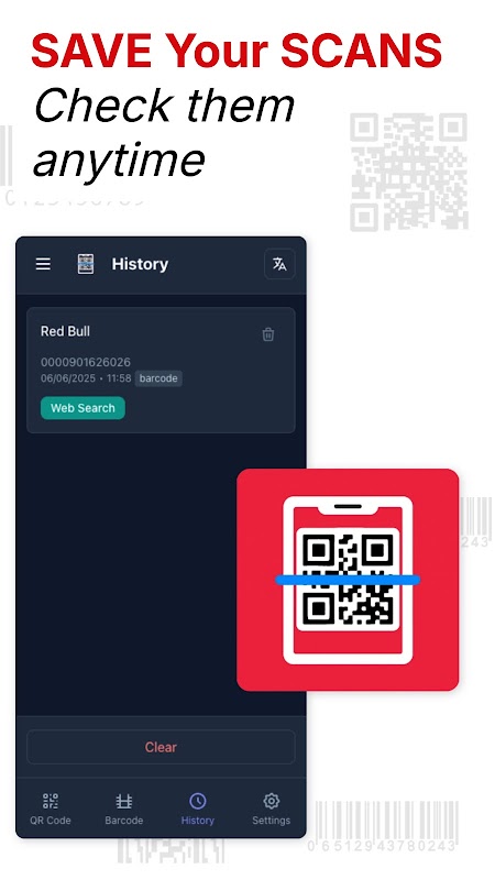 Tap “Web Search” to instantly search the internet based on your scanned result. Great for exploring links, product info, or QR codes on flyers and posters.