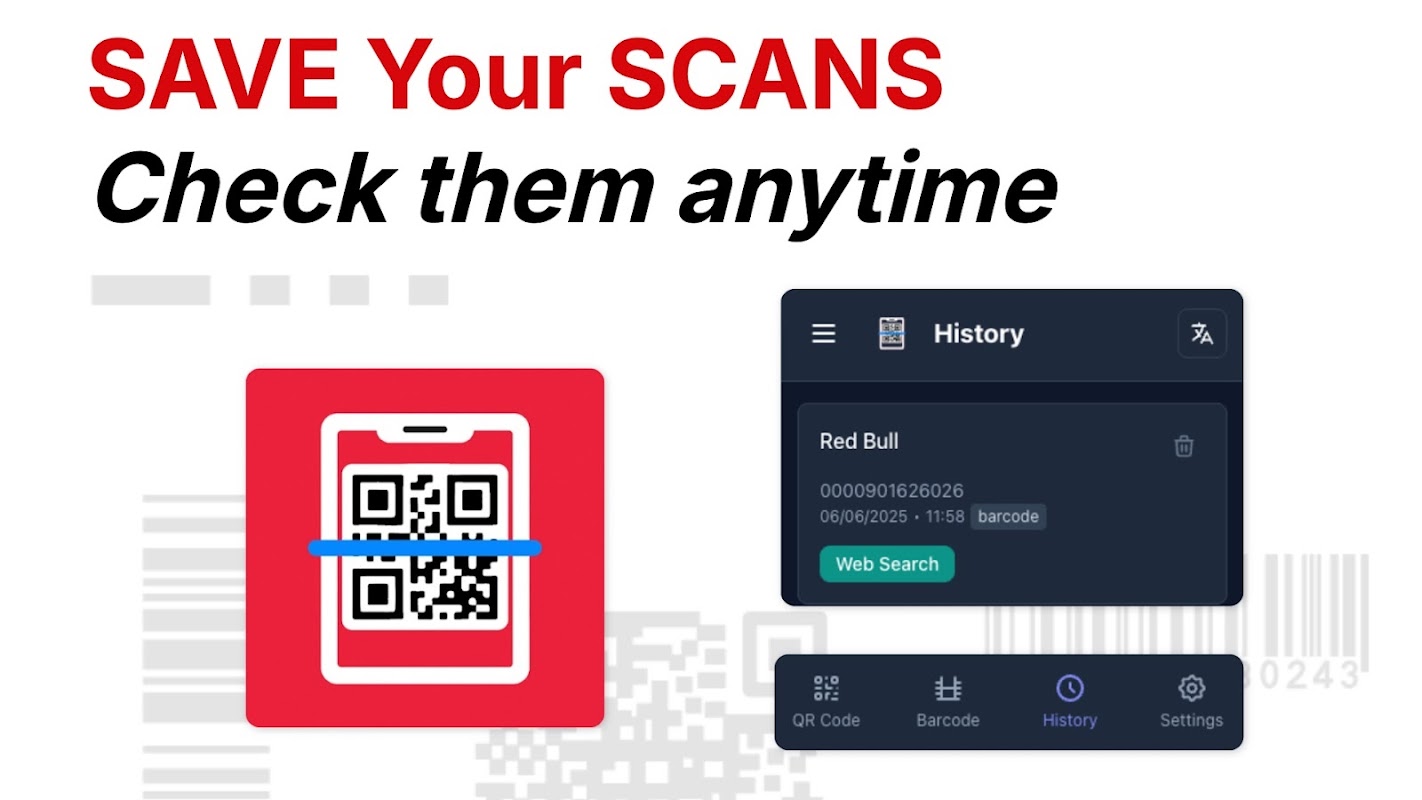 Every QR code or barcode you scan is saved in your scan history automatically. Revisit or reuse previous scans anytime — even when offline.