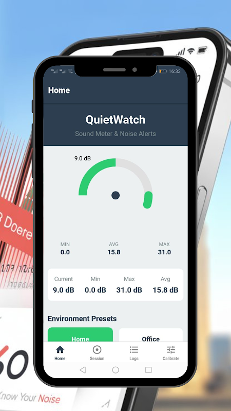 QuietWatch is a powerful offline sound meter app that helps you monitor noise in real-time. Measure dB and SPL levels, track min/avg/max readings, and visualize your sessions with simple graphs.